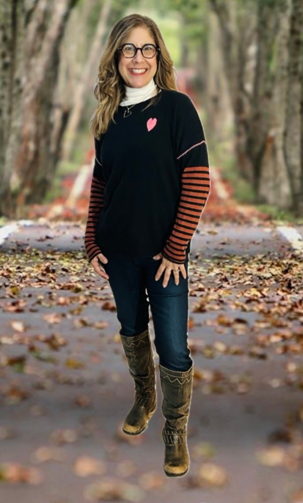 Great boots deserve a great sweater and jeans pairing. This sweater is a Lisa Todd – a great discovery from a couple of seasons ago. Lisa Todd sweaters are kind of kitchy with fun details. The jeans are Lucky.