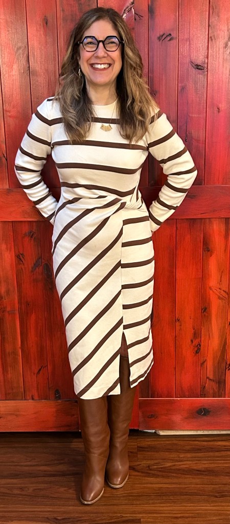Dress: Tanya Taylor, Boots: Banana Republic
