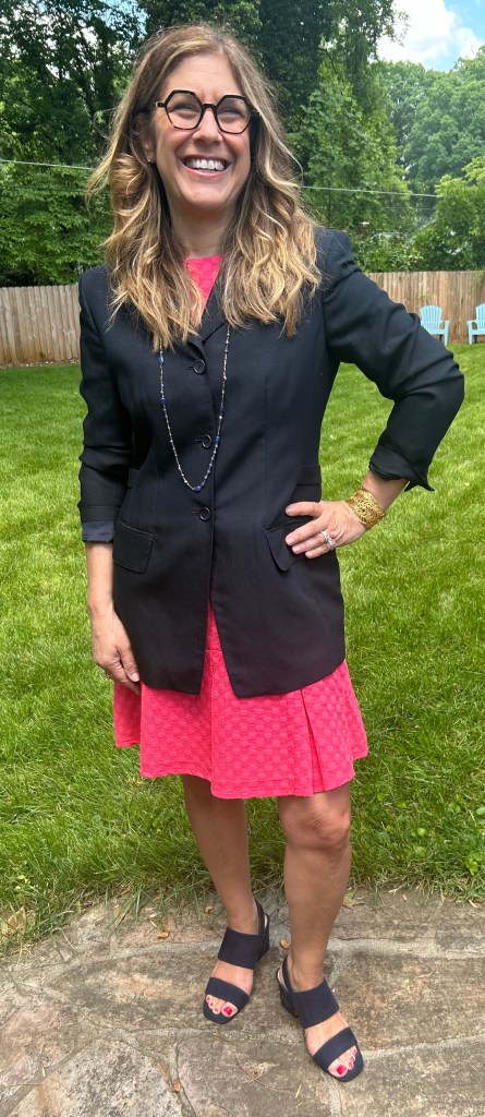 Jacket by Emanuel, Dress by Sail to Stable, Shoes by Anne Klein