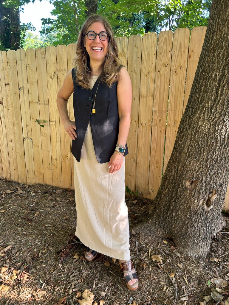 Z Supply Dress, Bananna Republic Vest, BedStu Shoes