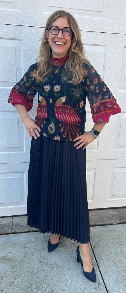 Top: Farm Rio, Skirt: Loft, Shoes: Marc Fisher