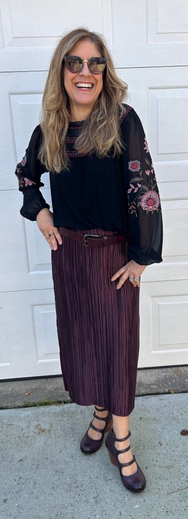 Top: Mystree, Skirt: Maeve, Shoes: Dansko