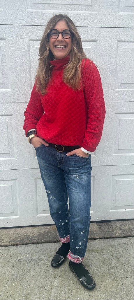 Sweatshirt: J Crew, Turtleneck: Loft, Jeans: Pilcro, Shoes: Me Too