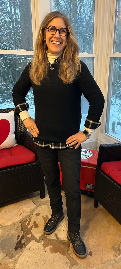 Sweater: Banana Republic, Flannel Shirt: J Crew, Turtleneck: Loft, Cords: Ann Taylor, Boots: Rieker