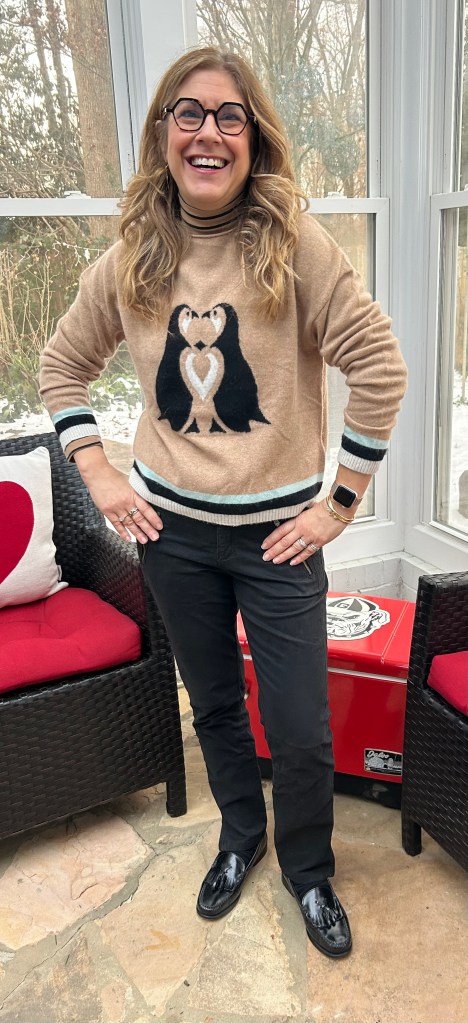 Sweater: Maeve, Turtleneck: Loft, Pants: Pilcro, Shoes: Bass