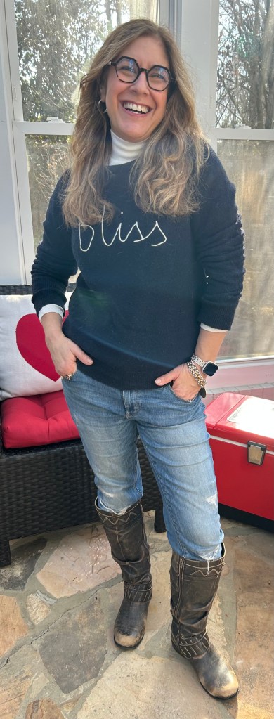 Sweater: J Crew, Turtleneck: Loft, Jeans: White House Black Market, Boots: Corral