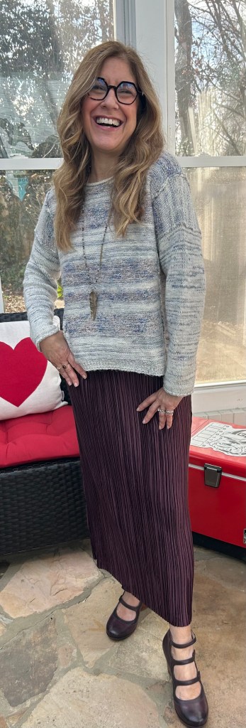 Sweater: Pilcro, Skirt: Maeve, Shoes: Dansko