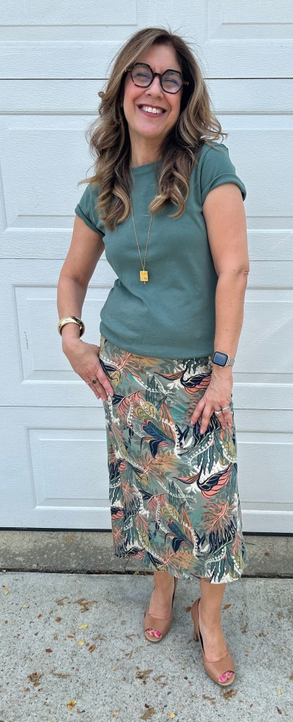 T-Shirt: J Crew, Skirt: Patagonia, Shoes: Moda